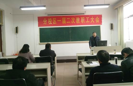 本次教职工大会主要议程有:党总支书记吕振华作党务工作报告及财务报告;分校区管委会主任纪延光作分校区工作报告;分校区分工会委员谢继亮作分工会工作报告;工会主席万洁在发言中对分校区的工作给予了充分的肯定,感谢分校区一年来对学校工会工作的大力支持。最后,分校区一届二次教职工大会圆满完成既定议程,胜利闭幕。