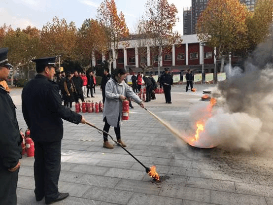 讲座结束后保卫科组织了全体人员实地演练灭火器使用,由保卫科科长朱伟及马治君老师讲解,培训人员在认真听讲及观摩后,逐一上前体验灭火器操作过程。保证在以后遇到真正险情时,能做到沉着冷静,正确处理险情。
