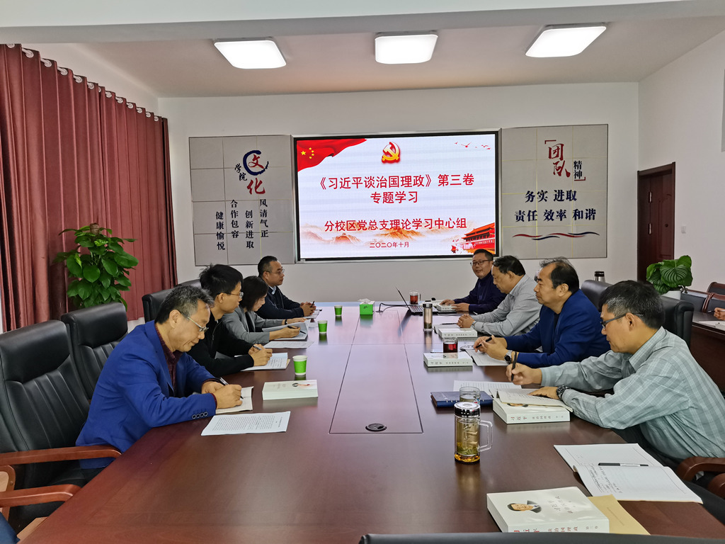 10月7日下午,分校区党总支书记张振松主持召开理论学习中心组学习会议,专题学习《习近平谈治国理政》第三卷。校党委常委、宣传部长杨雪英,组织部副部长韩振响等全程旁听了学习会议,总支委员,以及各支部书记参加了学习。