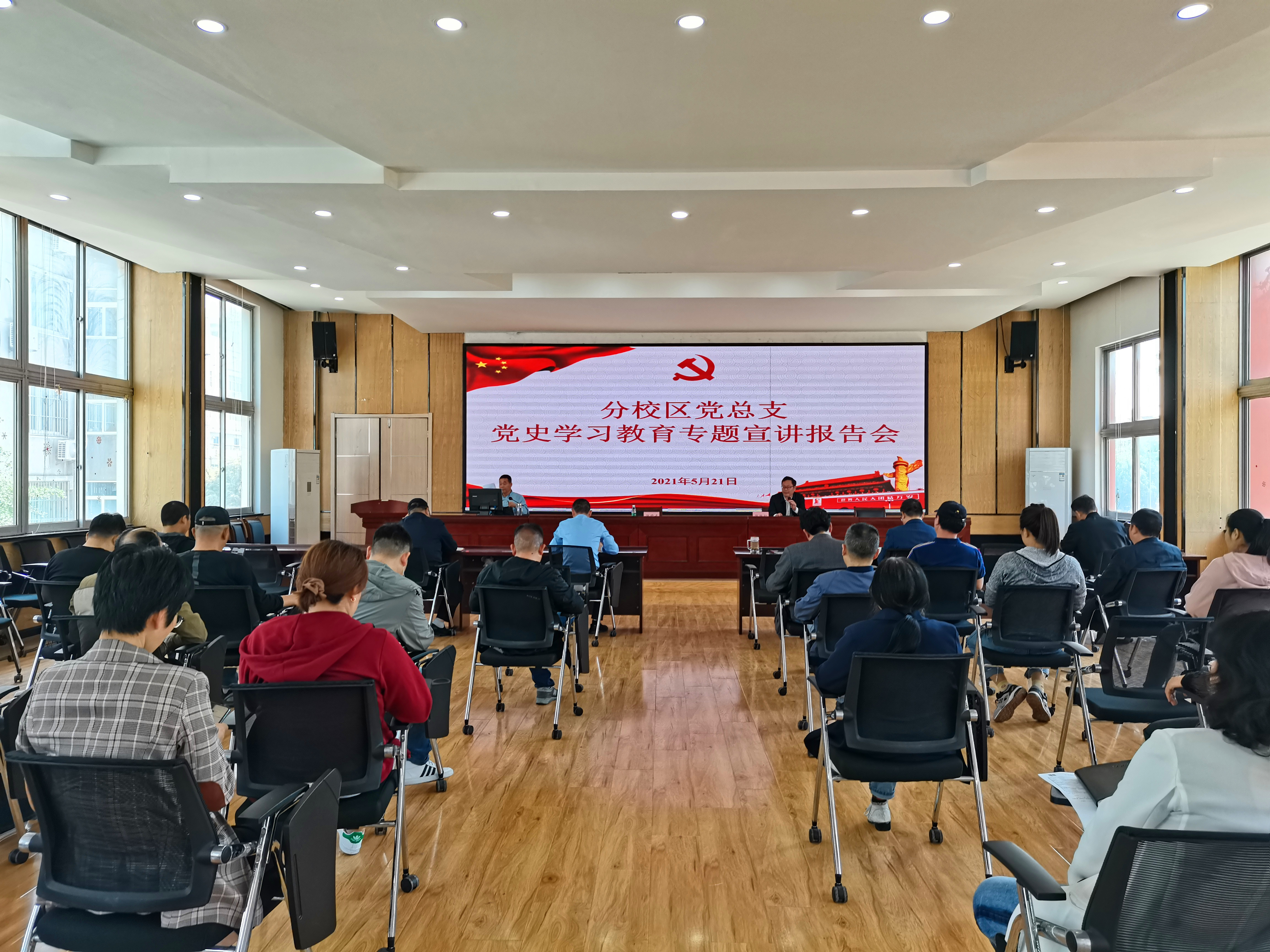 为深入开展党史学习教育,推进党史学习教育走深走实,5月21日,分校区党总支邀请校理论宣讲团成员、马克思主义学院党总支书记张学武作专题宣讲报告,报告会由党总支书记张振松主持,分校区管委会、大学科技园、继续教育学院全体教职工参加报告会。