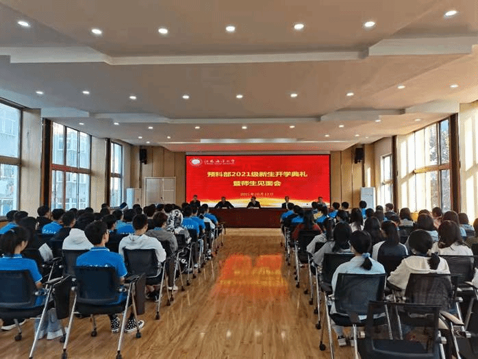 10月12日下午,江苏海洋大学2021级少数民族预科生开学典礼暨师生见面会在通灌校区路演大厅隆重举行。来自祖国5个省市自治区、12个少数民族的84名预科生参加了开学典礼。通灌校区党总支书记张振松、管委会主任沈加君、副主任孙克新、综合办主任朱伟、预科部副主任樊士进参加了会议。