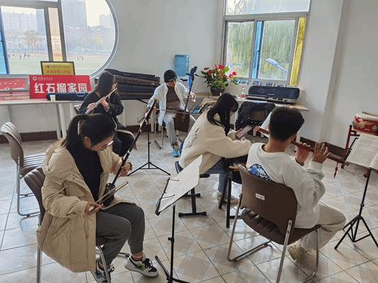 预科部民乐队成立于2020年,现有各类乐器30余件,先后培养民乐爱好者20余人。该活动是本学期教学成果的一次集中展示,乐手们轮流上台,先介绍自己学琴的经历和体悟,再演奏本学期学到的新曲目,最后由评委进行悉心点评和现场指导。演奏会之后,学生们将手上的乐器摆放在民族器乐室供大家参观。三十多件民族乐器依次摆开,形成了庞大的乐器阵容,有精致的老红木二胡、有大叶紫檀二胡、还有高档的古琴、马头琴。一件件精美的民族乐器,仿佛在向大家诉说着中华民族的悠久历史,使听众身临其境,耳濡目染,增强了大家的文化自信和审美能力。