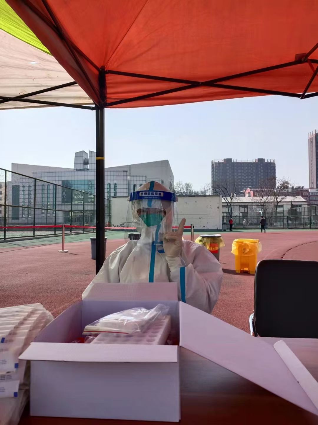 一方有难,八方支援,来自宿迁的医疗服务队伍,奔赴通灌校区开展核酸检测与防疫指导,他们的专业素养和敬业精神给大家留下深刻印象,疫情无情人有情,这群最美的“逆行者”在大家的眼中永远是最可爱的人。为配合医护人员做好核酸检测,学生志愿者提前与他们进行沟通,虚心学习疫情防控知识,在医护人员指导下不断优化志愿服务工作,努力做到科学有效防疫、安全高效检测。