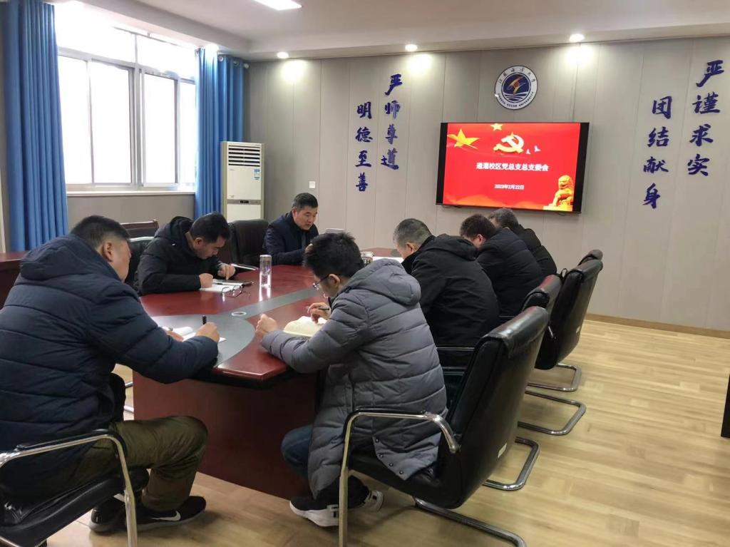2023年2月22日上午,通灌校区党总支在格物楼二楼会议室召开总支委会议暨全面从严治党工作会议。支委会全体成员和支部书记参加会议,党总支书记仲崇宏主持会议。