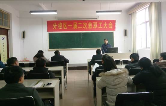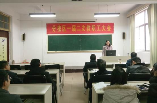 本次教职工大会主要议程有:党总支书记吕振华作党务工作报告及财务报告;分校区管委会主任纪延光作分校区工作报告;分校区分工会委员谢继亮作分工会工作报告;工会主席万洁在发言中对分校区的工作给予了充分的肯定,感谢分校区一年来对学校工会工作的大力支持。最后,分校区一届二次教职工大会圆满完成既定议程,胜利闭幕。