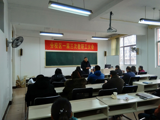 为更好地总结过去,展望未来,推动分校区各项事业发展迈向新台阶,绘就新蓝图,1月3日下午,分校区党总支在格物楼216会议室召开第一届教职工大会第三次会议,分校区党总支书记吕振华、分校区管委会主任纪延光、村官研究所所长李义良、技术转移中心唐正康副主任及分校区全体教职工参加了会议,会议由吕振华主持。