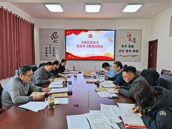 3月17日上午,分校区党总支在通灌校区诚意楼4楼会议室召开党史学习教育动员会,会议由党总支书记张振松主持,中层干部、党支部书记参加会议。