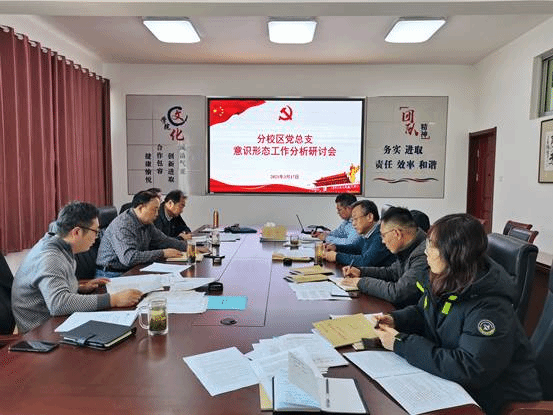 3月17日,分校区党总支在通灌校区诚意楼会议室召开意识形态工作分析研判会议,会议由党总支书记张振松主持,分校区管委会、大学科技园管委会、继续教育学院全体中层干部、各党支部书记参加会议。