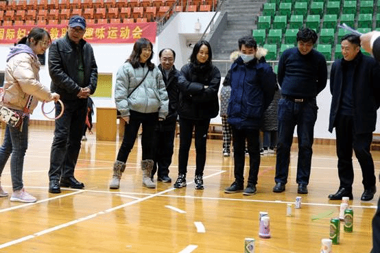30余名老师参加了7个项目的角逐,比赛项目形式丰富、内容有趣,且富有挑战性。套圈项目的现场热闹非凡,轻盈的套环纷飞,不断套中物品,周围不时发出喝彩声;飞镖投掷是一项技巧游戏,要求动作均匀、连贯、流畅、一气呵成,比赛扣人心弦、精彩纷呈;跳绳、踢毽子考验的是大家的弹跳、有氧耐力和身体协调性,每位参赛者都拼尽了全力,坚持到最后一秒;夹乒乓球是一项技术活,大家用筷子把盆里的乒乓球夹起,用最快、最稳的方法夹到指定区域;定点投篮是本次比赛的热门项目,参赛老师摩拳擦掌,跃跃欲试,许多老师球技非凡,不时投出精彩的进球,博得阵阵掌声。穿针引线是本场的重头戏,运动员同时起跑,跑至指定位置后迅速穿针引线,然后跑向终点,尽管难度很大,但大家的参赛热情很高涨,参赛选手身手矫健,场边加油助威声一浪高过一浪,最终,比赛在激烈角逐中落下帷幕。