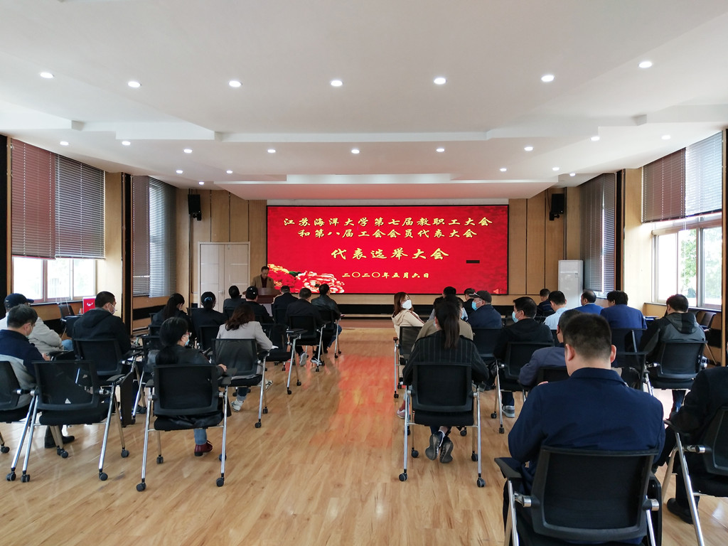 为做好“两代会”代表选举工作,5月6日分校区在诚意楼路演大厅召开江苏海洋大学第七届教职工代表大会和第八届工会会员代表大会代表选举大会,分校区管委会、大学科技园、继续教育学院全体教职工参加会议,会议由分校区分工会主席梁瑞康主持。